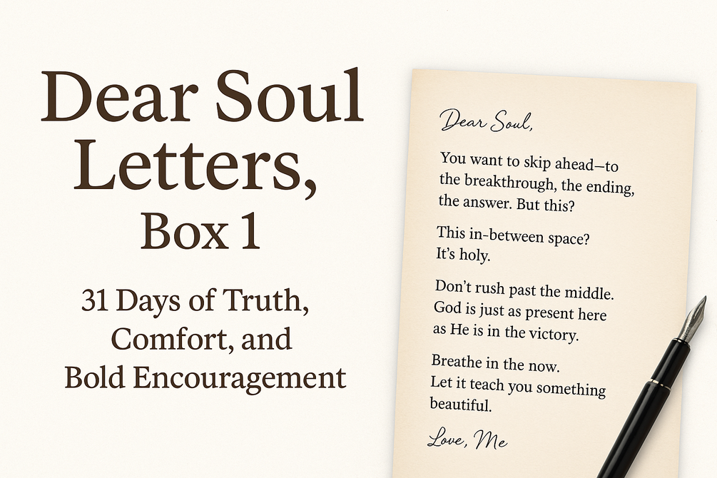 Dear Soul Letters, Box 1 is a beautifully written collection of 31 letter-style reflections—each one starting with “Dear Soul,” and ending with “Love, Me.” In between is a dose of what you actually need: truth, bold encouragement, grace, and sometimes a little holy sass.